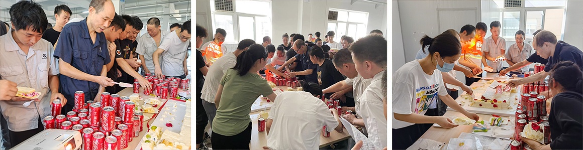 考虑到生产一线员工早晚班交替的特殊性,08点18分,庆祝三科股份12周年生日快乐的第一块蛋糕由总经理助理朱晓武先生在车间发言贺词后切下,由此打开了生产一线员工生日会的序幕。