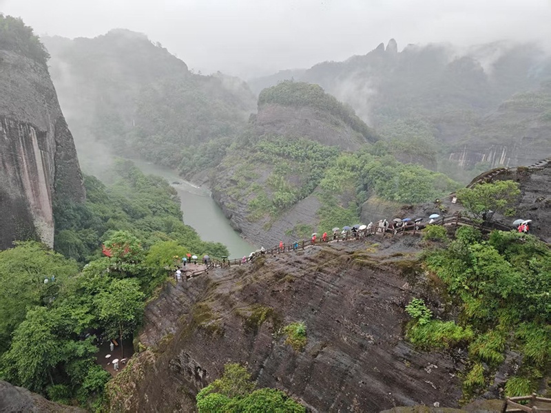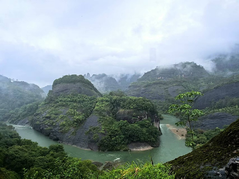 五月的武夷碧水丹山,九曲旖旎,恰逢雨季,笼罩在朦胧的烟雨之中,如梦如幻,别有一番景致!