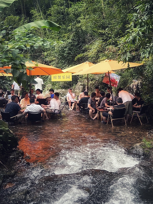 清晨 8 点,我们准时集合出发,向着安吉的绿意深处前行。两小时后,第一个惊喜便会撞入眼帘 ——云下飞瀑的美景足以让所有疲惫烟消云散。这里的瀑布咖啡早已火爆出圈,站在观景台放眼望去,山野间的瀑布如白练倾泻,溪水潺潺绕过脚边,茂密的绿植勾勒出巴厘岛般的热带风情,每一眼都是治愈心灵的自然画卷。